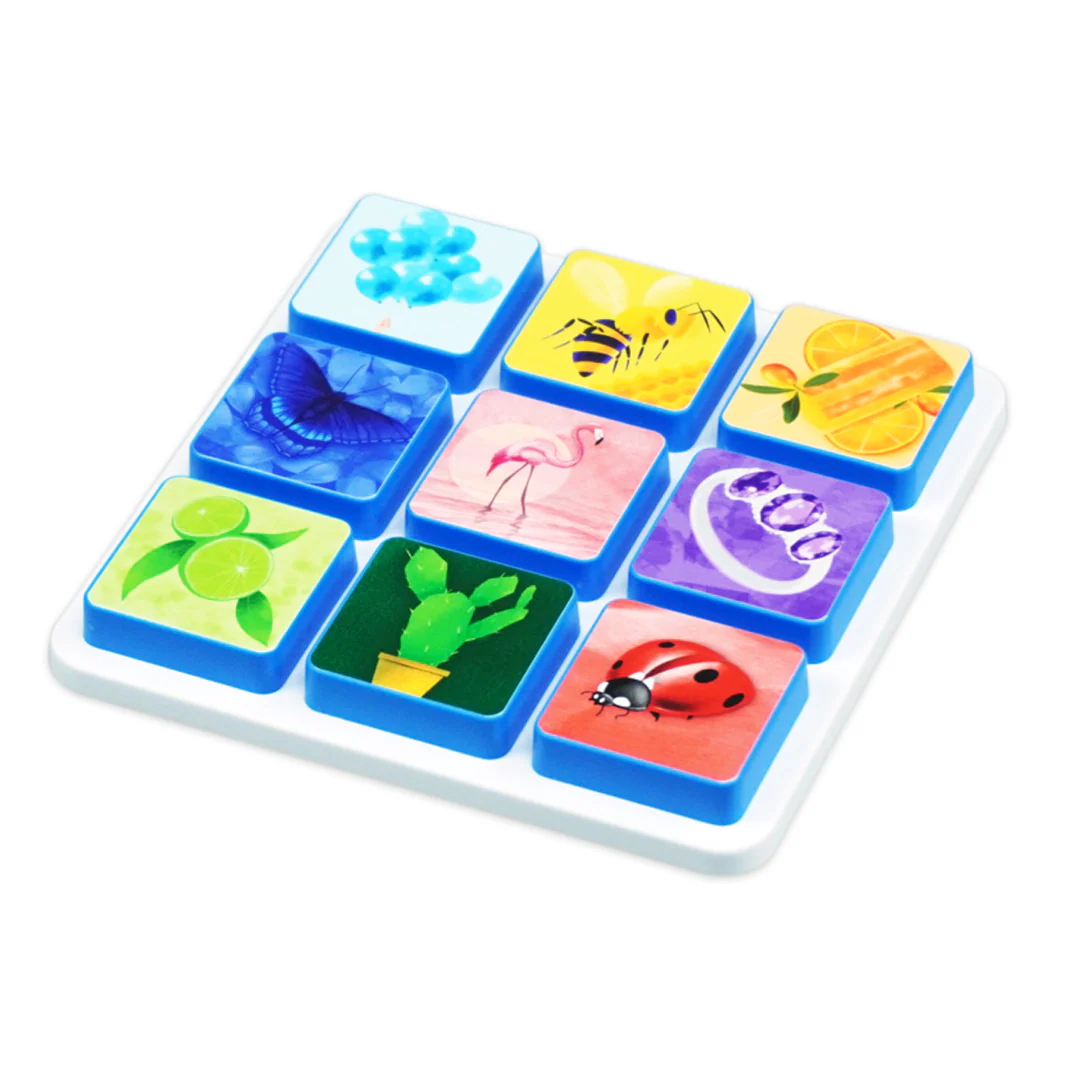 • Memory game tiles with colorful images of objects and animals