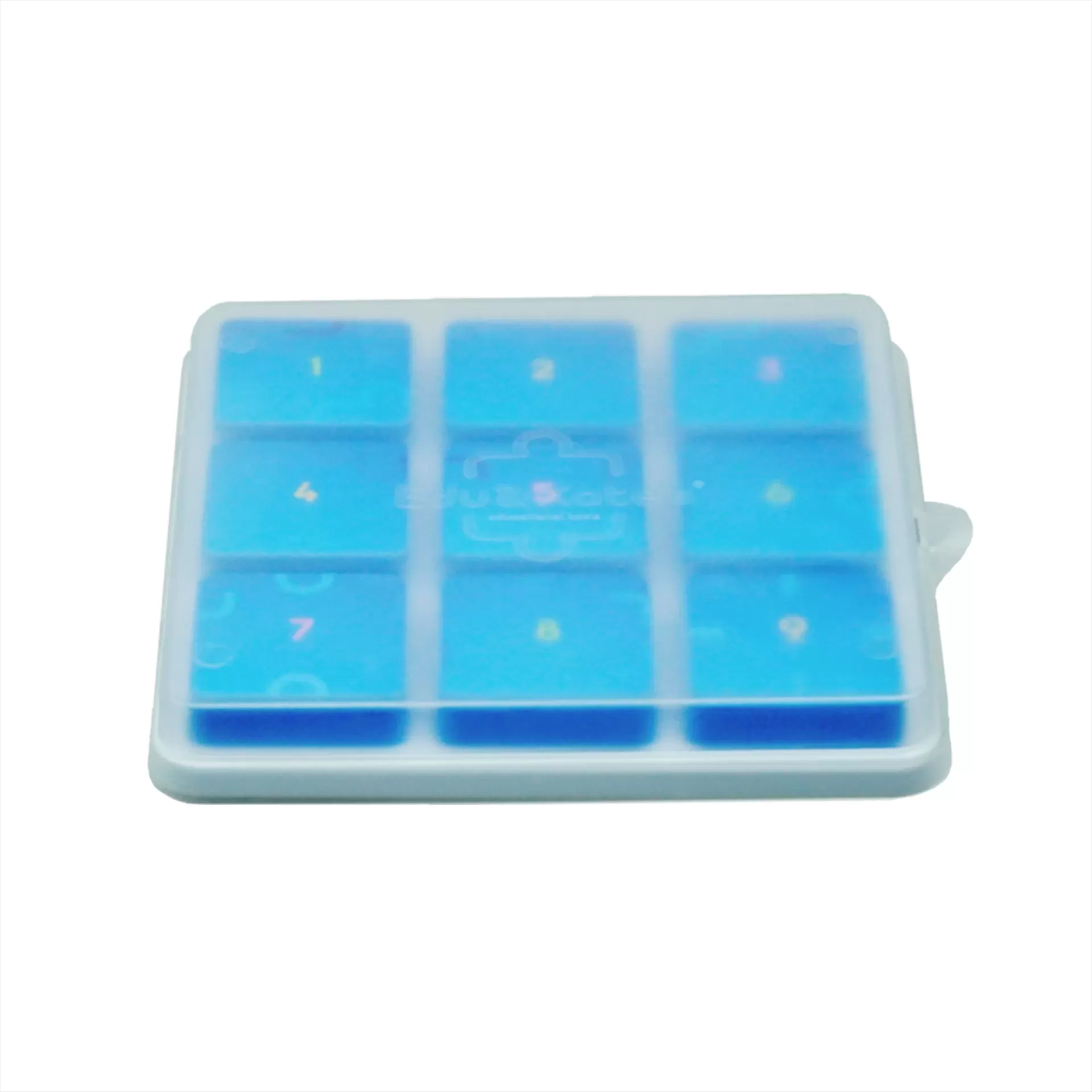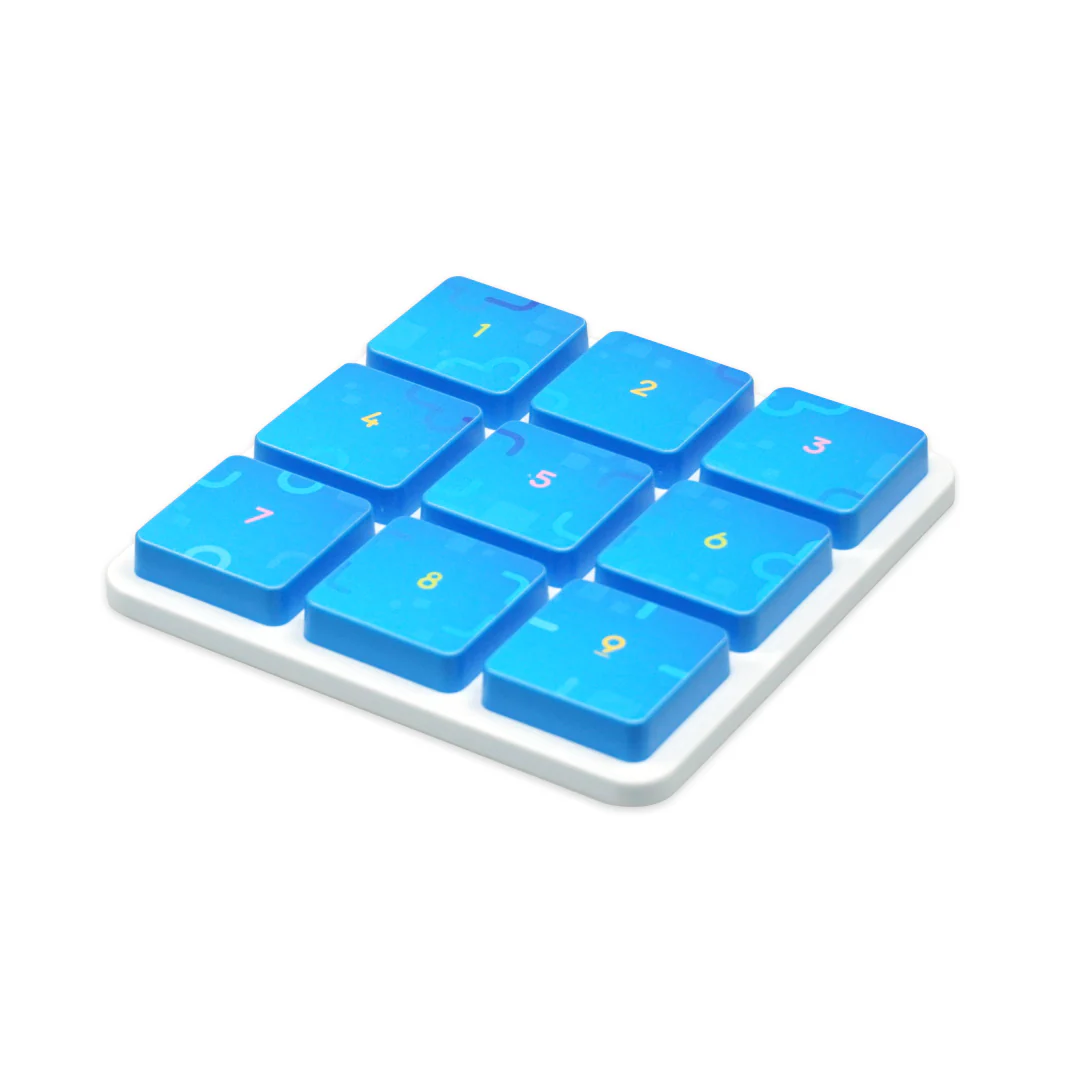 • White base with nine blue square buttons numbered 1 to 9 in a 3x3 grid