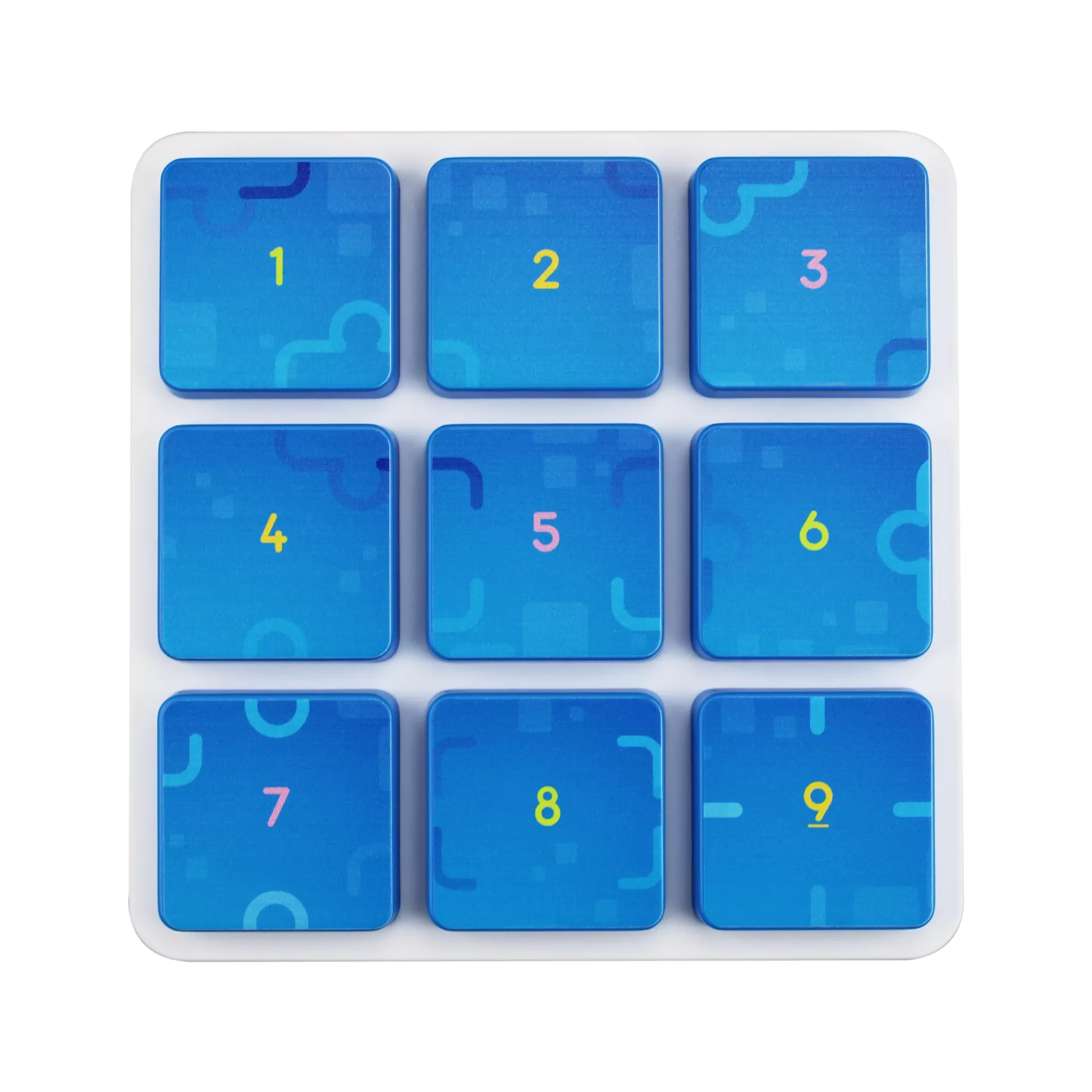 White base with nine blue square buttons numbered 1 to 9 in a 3x3 grid