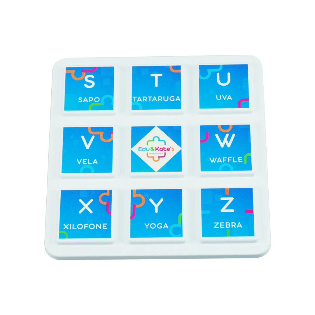 Super Combo Words – Alphabet S–Z – Letter Discovery and Reading is an educational game designed to help children learn the alphabet from letters S to Z, focusing on the visual recognition of each letter and reading practice through associations with illustrative images that represent words beginning with those letters. The game includes a base with a lid and pieces that children can place on the board, promoting a fun educational experience that reinforces letter familiarity, introduces phonological awareness, and makes the first steps into reading more engaging and accessible.
